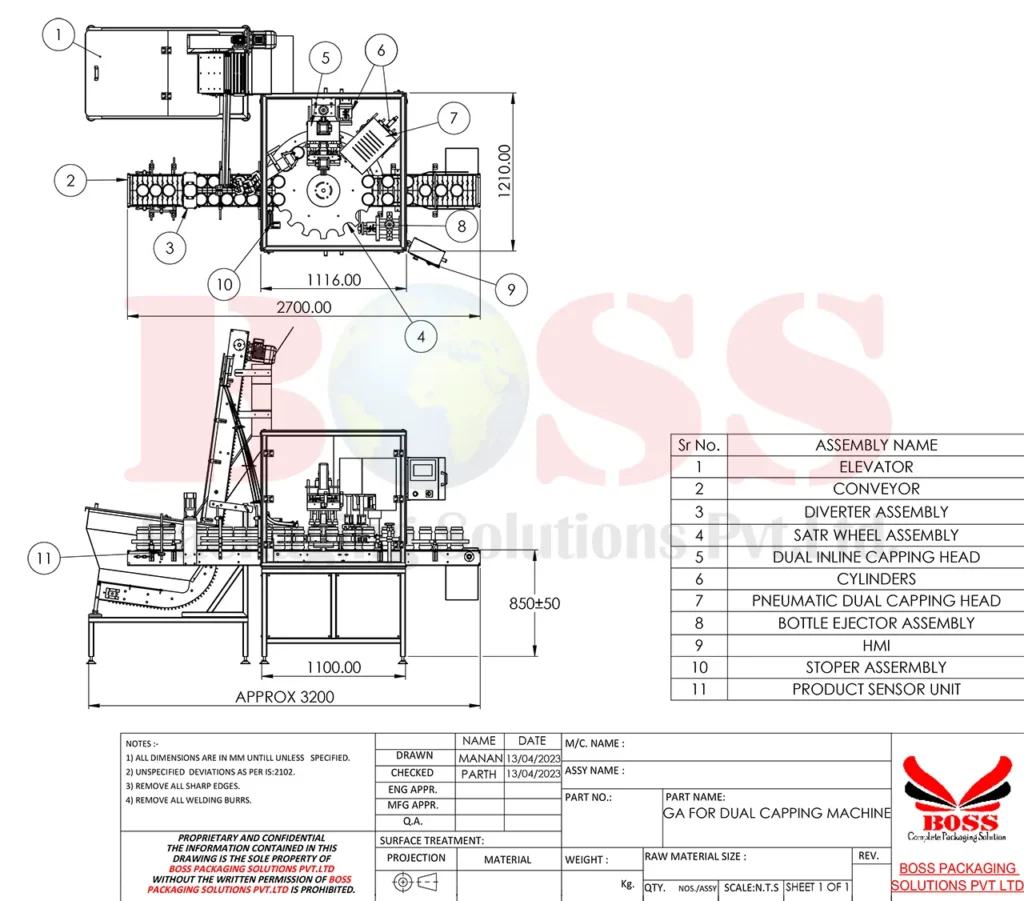 Height of Conveyor 850 mm (+/-50 mm) Adjustable